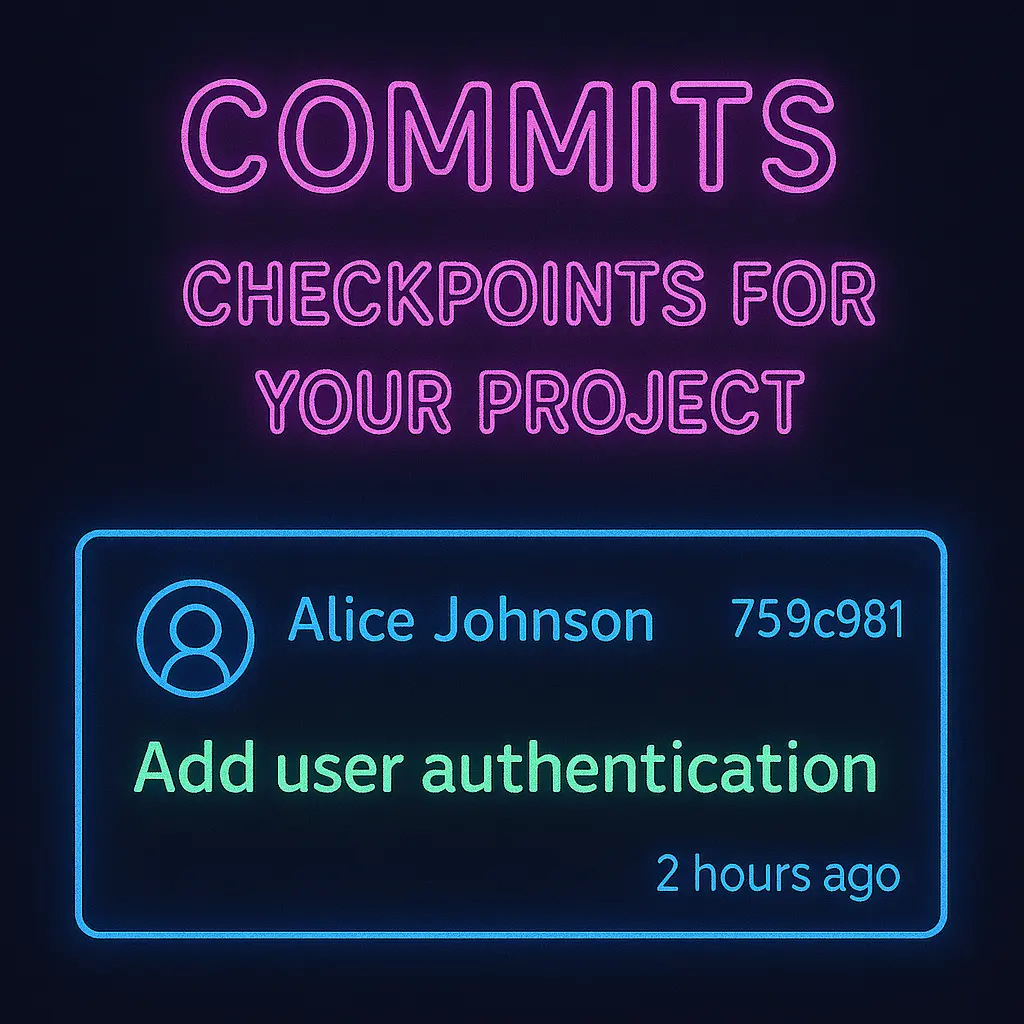 Commits are checkpoints for your project. You create them when you've made meaningful changes, like adding a new feature.